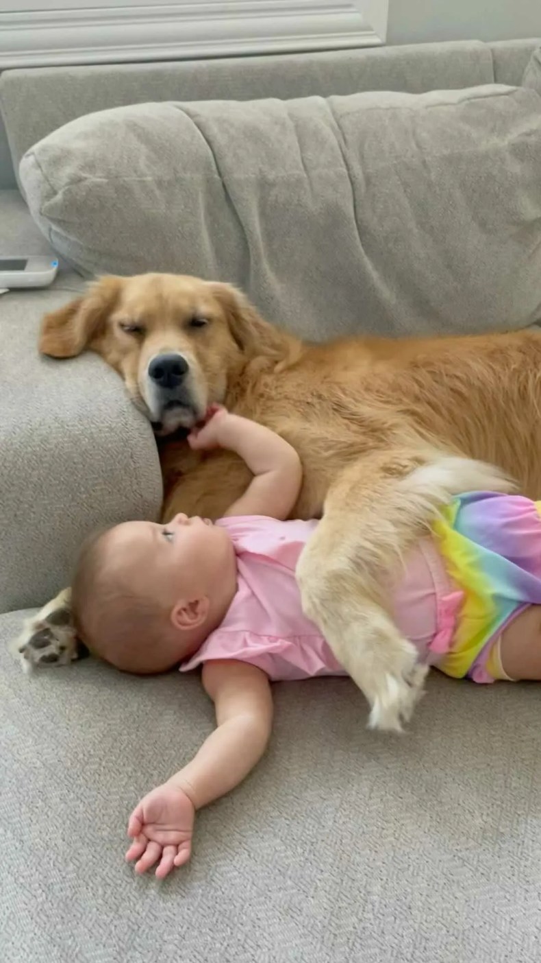 Expertise the heartwarming scenes of a intelligent canine turning into a loving protector, protecting a child secure and comfortable with mild hugs, making a bond that makes everybody’s coronary heart soften.