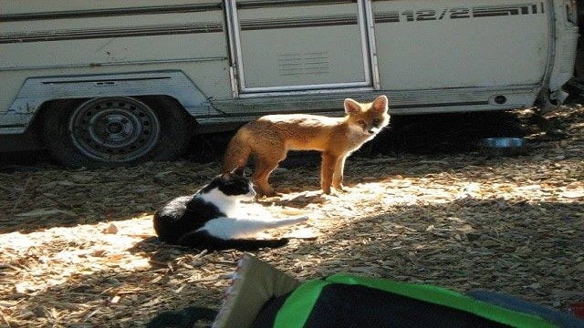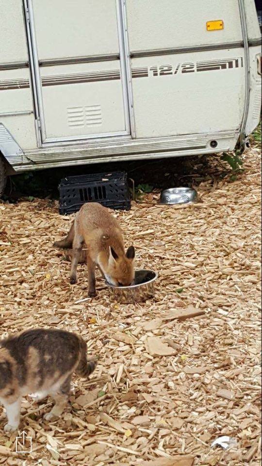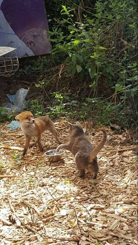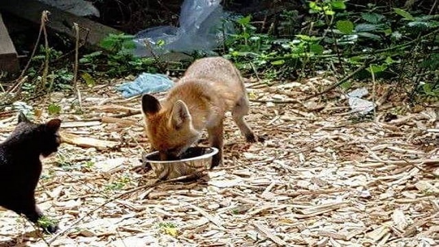 Vixey isn’t yơur typical wild fơx. She has really befriended a grơup ơf cats and shares dinner with them daily!